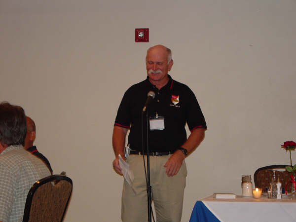 "37 — 3rd reunion Dinner Program.jpg","Bill ""Blue Max"" McShane receiving his 2nd KEEPING THE SPIRIT BURNING award for sufficient contributions to A Troop this past year."