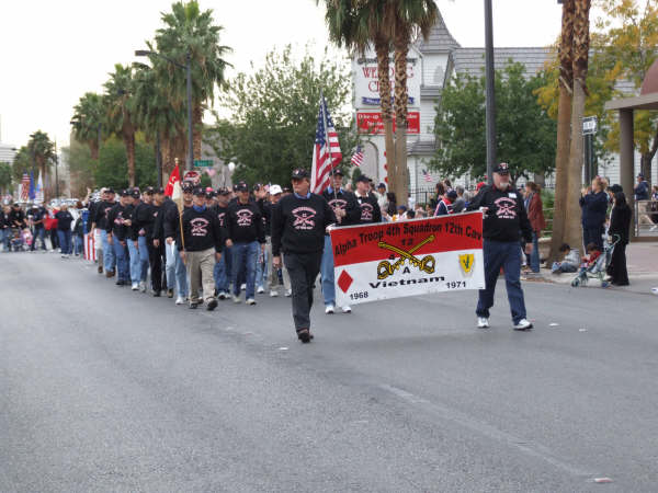 "1 — Veteran's Day Parade 2006 Las Vegas.jpg","A Troop 4/12 Cav marching as a unit in Veteran's Day Parade as part of Troop reunion 2006"